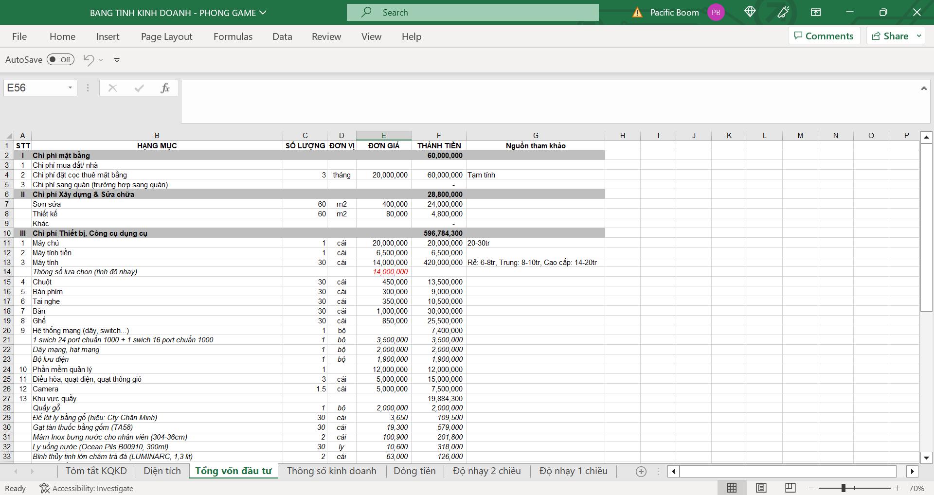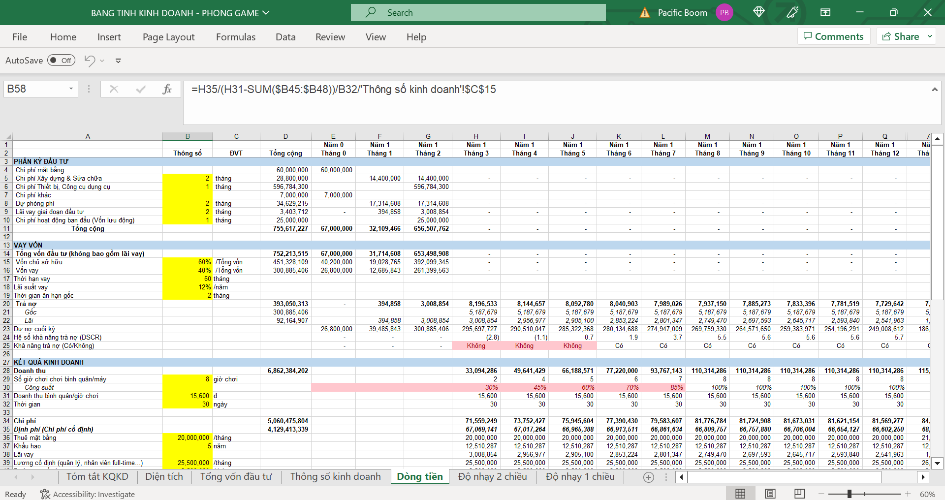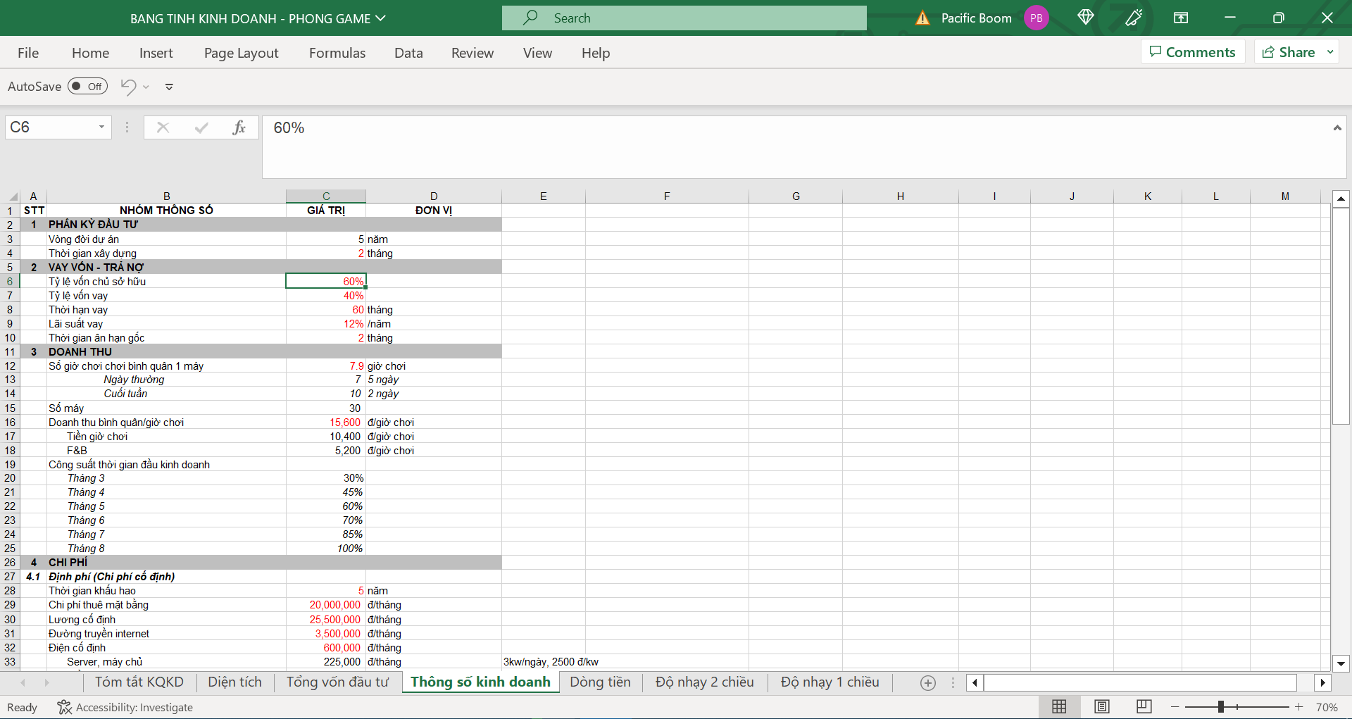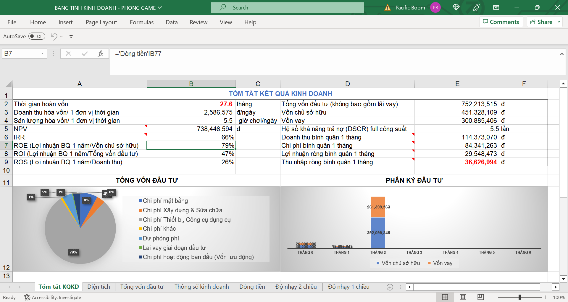 * Hướng dẫn sử dụng: Khách hàng chỉ cần nhập liệu vào 2 sheet “TỔNG VỐN ĐẦU TƯ” VÀ “THÔNG SỐ KINH DOANH”. Kết quả tại các sheet khác sẽ tự động tính toán. Cách lập file chi tiết xin vui lòng xem video hướng dẫn đính kèm sản phẩm.